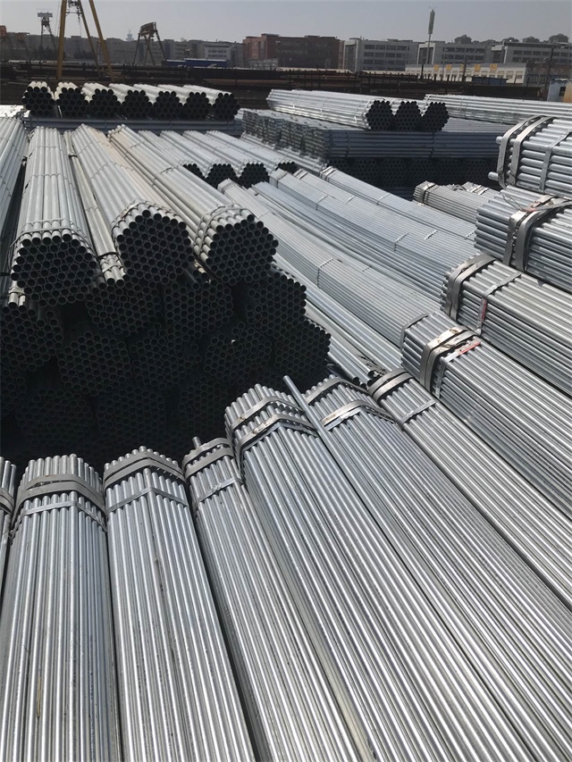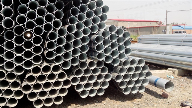 生产工艺:选用优质钢材作为原料,通过卷板、焊接等工艺将钢材加工成所需形状的钢管,然后将钢管浸入熔融的锌液中,使其表面形成一层均匀的锌层,最后对成品进行严格的质量检测,包括外观检查、壁厚测量、压力测试等,确保产品质量符合标准。